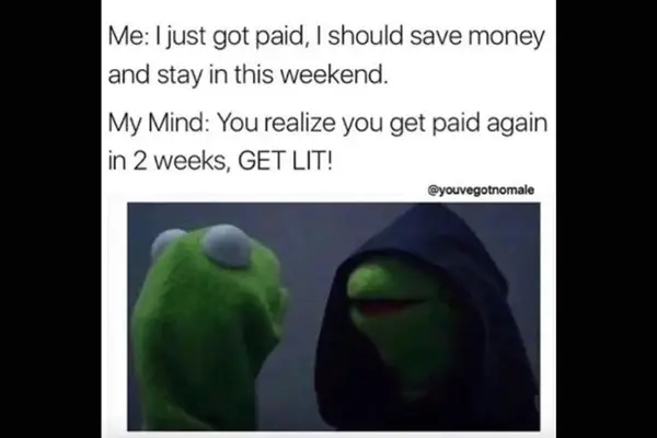 Ich: Ich habe gerade bezahlt, ich sollte an diesem Wochenende Geld sparen und bleiben.