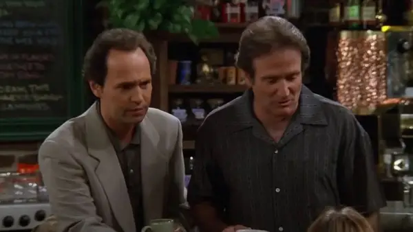 20. Robin Williams y 21. Billy Crystal - Man könnte sagen, dass die denkwürdigsten eingeladenen Stars Robin Williams und Billy Crystal ihre gesamte Szene im Programm improvisiert haben. Williams spielte eine Figur, die davon überzeugt war, dass seine Frau betrogte und Recht hatte. Sie betrogen mit Crystals Charakter. Die Szene dauerte nur ein paar Minuten, aber sie war sicherlich dramatisch.