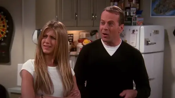 32. Bruce Willis - Tatsächlich gehört Bruce Willis zu denjenigen, die ein wenig für Freunde angehalten haben. Er spielte Elizabeths Vater, der Universitätsstudent Ross begann zu gehen. Es war ein ordentlicher Typ.