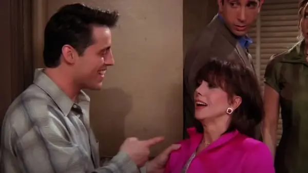 2. Jay Leno - Er wurde ihm nicht zugeschrieben, aber Jay Leno trat in Freunden zu Gast auf. Er kam mit der Einführung von Morgan Fairchild als Chandlers Mutter. Sie war eine berühmte romantische Autorin im Programm, also interviewte Leno Nora Tyler Bing. Und nein, verwendete nicht nur recycelte Bilder!