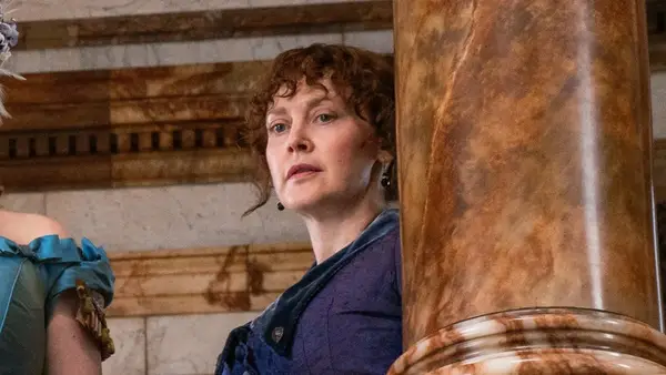 Simone Kirby als Miss Testvalley in Buccaneers (Apple TV)