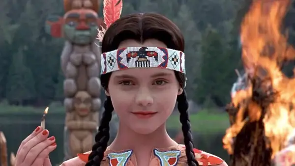 Riccis Burn-Down-Down-Down-Mittwochs Addams ist immer noch absolut ikonisch. Diese Szene, in der ein Thanksgiving -Werk in (Horror!) Sommercamp brennt, ist eines der wenigen Male, in denen wir sein Lächeln wirklich sehen.