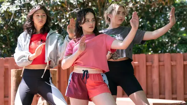 (L a r) O'Brien Como Devon, Mary Mouser Como Saantha Blasso, Peyton List Como Tory Nichols und Cobra Kai.