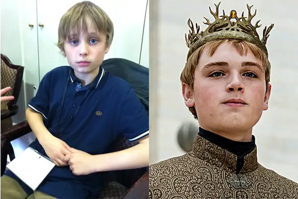 Die erste vorläufige Rolle des jungen Callum Whathry (links) war die von Tommen Baratheon, dem Sohn von Cersei und Jaime Lannister. In den ersten beiden Spielzeiten spielte er Tommen, aber für die vierte Staffel übernahm Dean Charles-Chapman (rechts) den Charakter. Charles-Chapman spielte zuvor die Rolle von Martyn Lannister, Tommens Cousin.