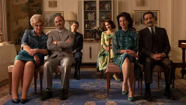 Caroline Aaron, Kevin Pollak, Michael Zegen, Rachel Brosnahan, Marin Hinkle und Tony Shalhoub in einer wunderbaren Frau Maisel.