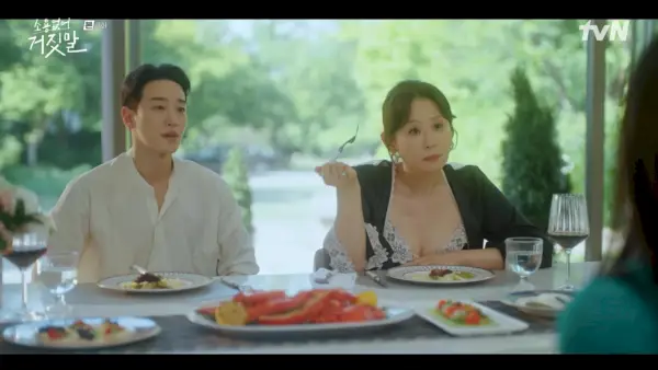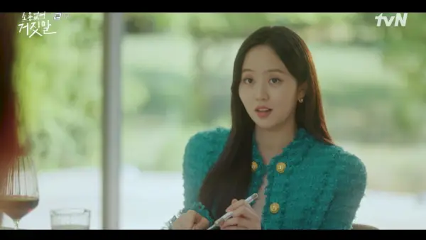 Dann springen wir fünf Jahre auf den heutigen Tag vor. Sol-hee hat ihre Praxis und ihr Vermögen erweitert. Mittlerweile betreibt sie mit ein paar Angestellten ein Tarot-Café. Es handelt sich um die gleiche Art von Lügenjagd, erfordert aber einen noch höheren Gehaltsscheck und oft auch etwas Schauspielerei. Als würde man sich als Cousine einer wohlhabenden Frau ausgeben, um herauszufinden, ob ihr junger Liebhaber ehrlich oder ein Goldgräber ist (er betrügt das Dienstmädchen und es ist ein sagenhaft unterhaltsamer Cameo-Auftritt von Kim Sun-young Und Lee Tae-sun Das zeigt auch, wie Menschen die Kräfte von Sol-hee durch Lügen durch Unterlassung verwirren können.