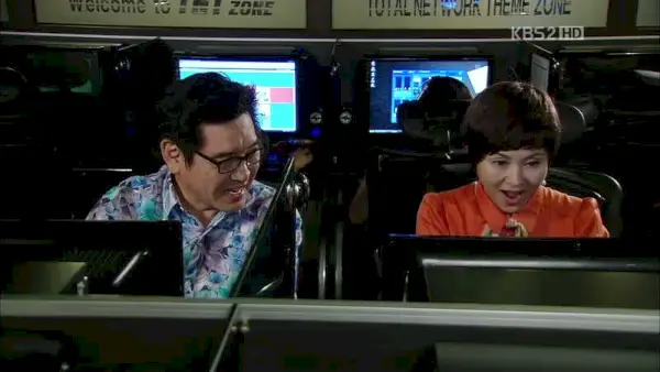Und wie fangen sie an? Natürlich durch die Anmeldung zum Kang-Joo Couple Anti-Fan Club. HAHA. Sie gehen schnell zum PC in der Nachbarschaft und loggen sich ein, begierig darauf, das Internet zu überschwemmen, stellen dann aber fest, dass ihre technischen Fähigkeiten nicht ganz auf dem neuesten Stand sind. Sie bitten einen Schüler, der neben ihnen sitzt, um Hilfe, doch der Junge ärgert sich darüber, dass er von seinem Spiel abgehalten wird, und lehnt ab. Sie können über seine Unhöflichkeit nicht einmal richtig beleidigt sein, weil sie den südkoreanischen Slang, den er verwendet, um sie zu beschimpfen, nicht verstehen. Ha.
