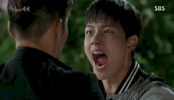 Tae-hoon wird blass und stammelt nervös, also packt Hae-sung ihn am Revers und schreit ihm ins Gesicht: „Wie konntest du mir das antun?“ Wie!? Wie könntest du nach dem, was du getan hast, mit Young-in ausgehen, mit unseren Freunden abhängen und nett zu meinen Geschwistern sein?