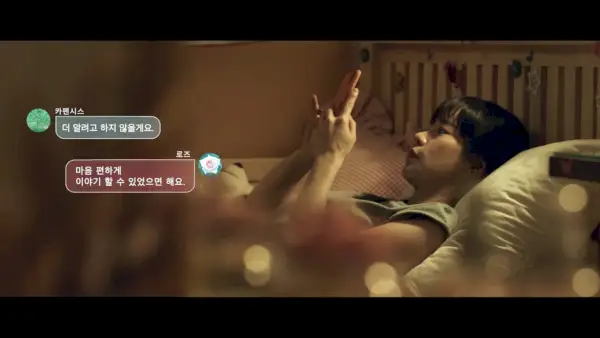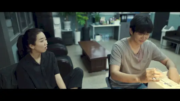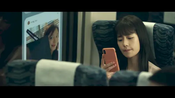 Es stellt sich heraus, dass Mi-yeon auch jemand anderen beauftragt hat – wir sind noch nicht in die Identität der jungen Dame eingeweiht, aber sie filmt nicht nur heimlich die Bewegungen der Geschwister, sie tritt auch unter dem Vorwand einer Anleihe an Ji-na heran ihr Telefon für einen Anruf. Dadurch gelangt sie an Ji-nas Nummer und mit einer betrügerischen SMS (Ji-na, warum solltest du auf den Link klicken?) gelingt es ihr, eine Software herunterzuladen, mit der sie aus der Ferne auf Ji-nas Telefon zugreifen kann.
