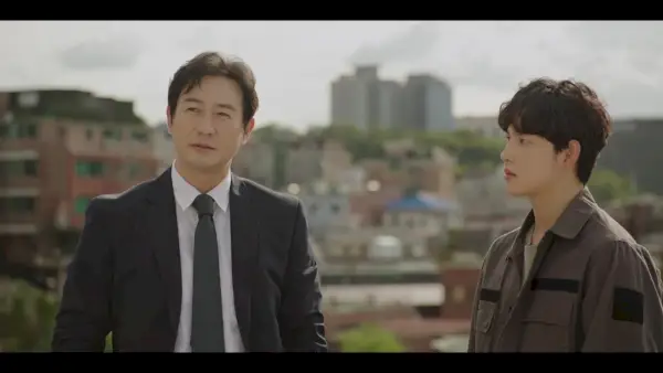 Bevor er geht, hebt Dong-joo etwas vom Boden auf und fragt Direktor In, ob es ihm gehört. Er hält ihm einen Manschettenknopf hin und Director In starrt ihn einen Moment lang wortlos an. Es ist das Bild, das er in der Nacht verloren hat, in der Dong-joos Vater starb, und Direktor In blickt auf und sieht, wie Dong-joo ihn anlächelt.